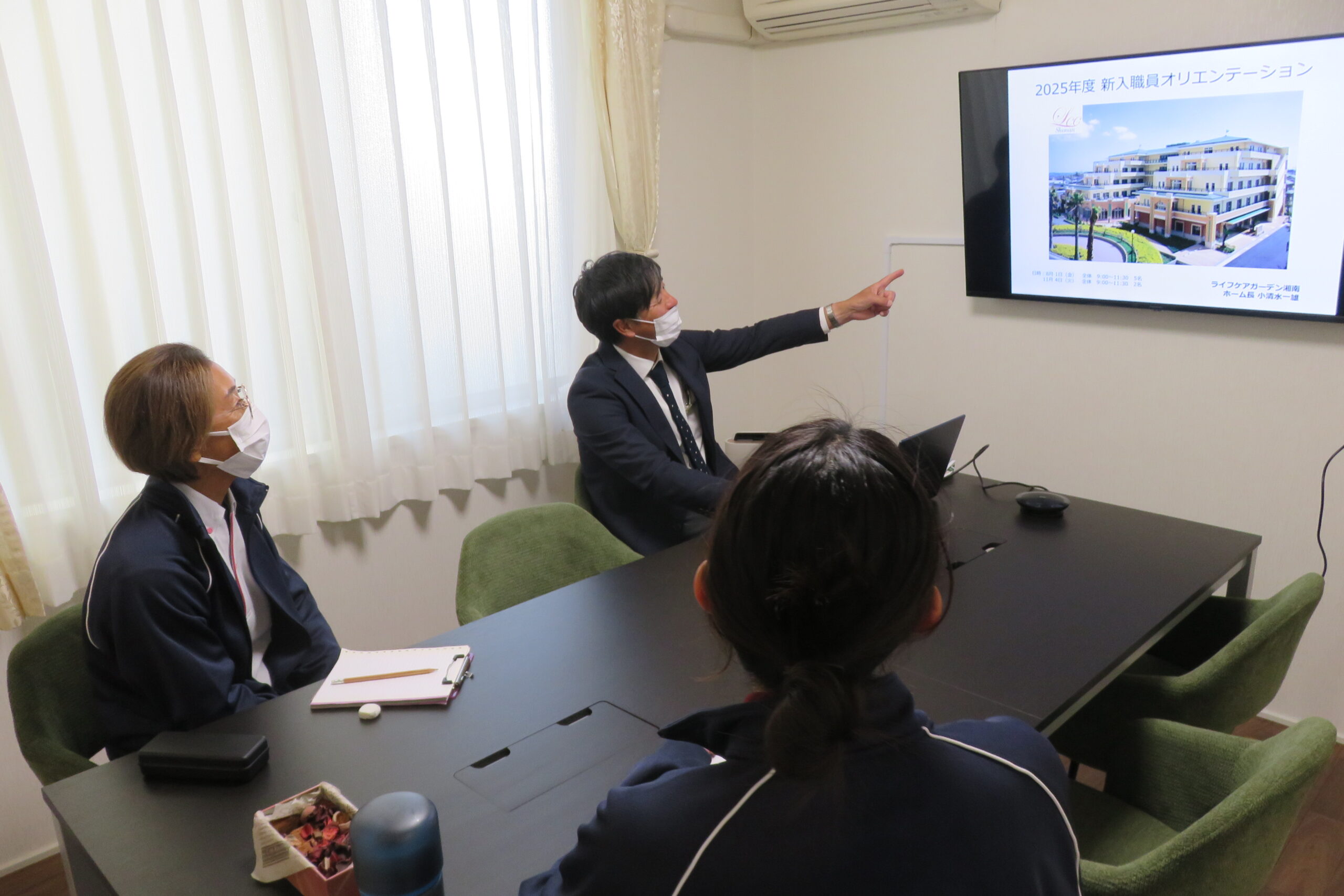 今回のオリエンテーションは事務部門1名、介護部門1名の職員さん2名です