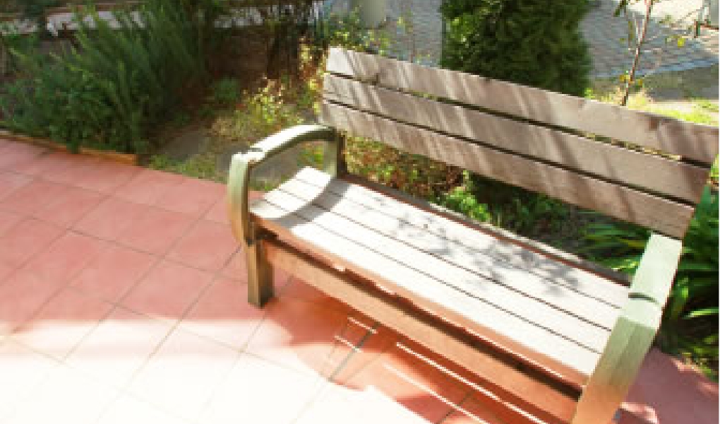 庭園では、お散歩の際などに自然とのふれあいを楽しんでいただけます。食堂からも眺めることができ、四季の変化を感じることができます。